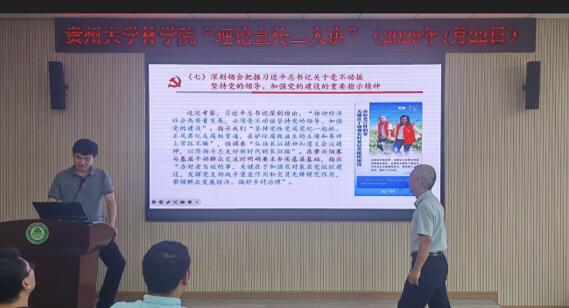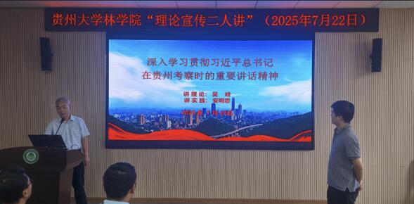 2025年7月22日,bevictor伟德官网森林资源与环境研究中心副主任吴峰、bevictor伟德官网实验中心教工党支部书记安明态2人首先作了《深入学习贯彻习近平总书记在贵州考察时的重要讲话精神》的专题宣讲,提醒大家要深入领会把握七个重点,全面系统抓学习,扛牢责任抓落实,改进作风破难题。习近平总书记深刻指出“高质量发展是中国式现代化的必然要求”,既明目标、指方向,又教方法、鼓干劲,必将指引贵州开启高质量发展崭新阶段,以高质量发展的步步推进赢得现代化建设的节节胜利。我们要切实把思想和行动统一到习近平总书记考察贵州重要讲话精神上来,坚持以高质量发展统揽全局,以昂扬斗志走好新时代的长征路,以实干实绩忠诚践行“两个维护”,以新担当新作为新形象在中国式现代化进程中展现贵州新风采。
